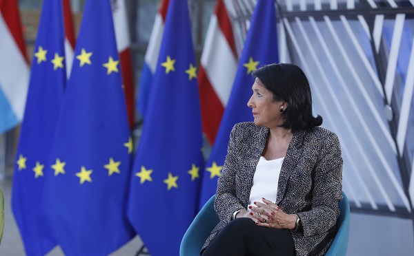 კონფერენციის დაწყებამდე, სალომე ზურაბიშვილი ბრიუსელში შა...