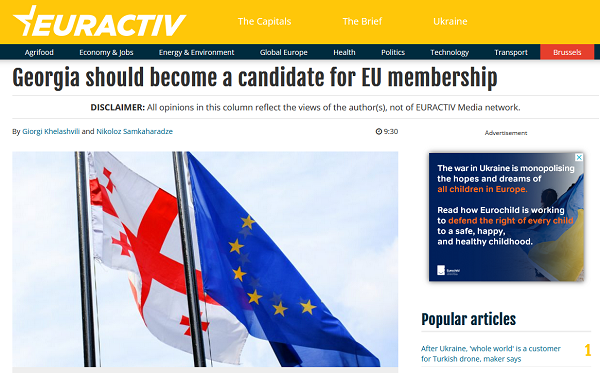 საქართველო უნდა გახდეს ევროკავშირის წევრობის კანდიდატი - Euractiv-ზე ნიკოლოზ სამხარაძისა და გიორგი ხელაშვილის საავტორო სტატია გამოქვეყნდა