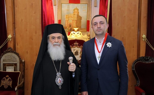 იერუსალიმის პატრიარქმა თეოფილოს III-მ საქართველოს პრემიერ-მინისტრი ირაკლი ღარიბაშვილი ქრისტეს ყოვლადწმინდა საფლავის რაინდის ორდენითა და მაცხოვრის ძელიცხოველის გამშვენებული ჯვრით დააჯილდოვა.