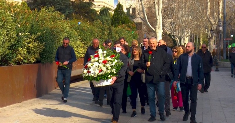 პარტიის წარმომადგენლებმა პარლამენტის წინ მემორიალი გვირგვინით შეამკეს.