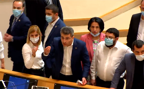ოპოზიციამ ვახტანგ გომელაურს სიტყვით გამოსვლა შეაწყვეტინა
