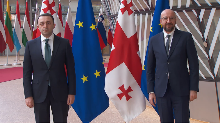 ბრიუსელში ირაკლი ღარიბაშვილისა და შარლ მიშელის შეხვედრა მიმდინარეობს