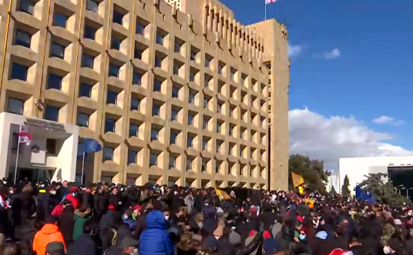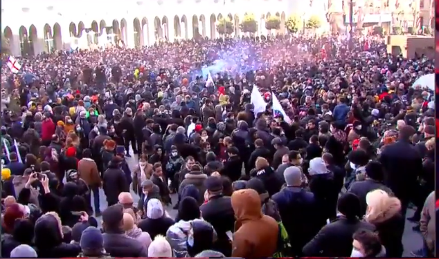 მთავრობის კანცელარიასთან შეკრებილმა მოქალაქეებმა და ოპოზიციის ლიდერებმა, რომლებიც ნიკა მელიას დაპატიმრებას და ნაციონალური მოძრაობის ოფისის ძალადობრივად დარბევას აპროტესტებენ, პარლამენტის წინ გადაინაცვ...