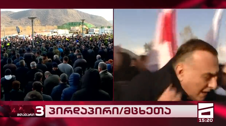 მცხეთაში მიმდინარე აქციაზე ზაალ უდუმაშვილს ბოთლი ესროლეს | ვიდეო