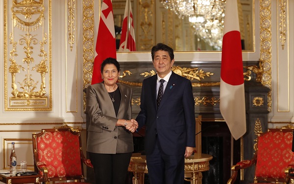 საქართველოს პრეზიდენტი სალომე ზურაბიშვილი იაპონიის პრემიერ-მინისტრს შინზო აბეს შეხვდა. შეხვედრის ამსახველი ფოტო სალომე ზურაბიშვილმა მიკრობლოგ "ტვიტერით" გაავრცელა.
