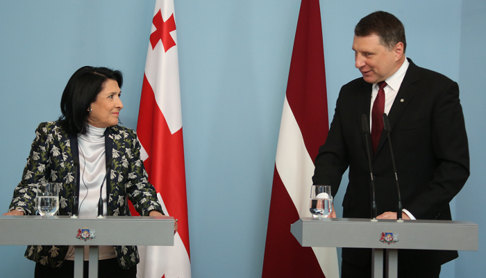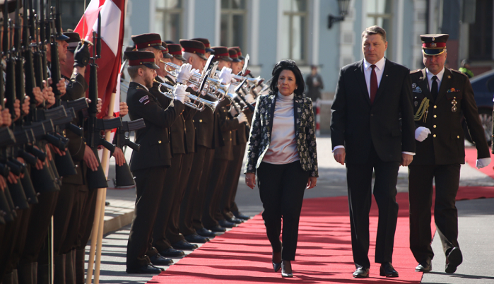 რიგაში საქართველოს პრეზიდენტის დახვედრის ოფიციალური ცერემონია გაიმართა
