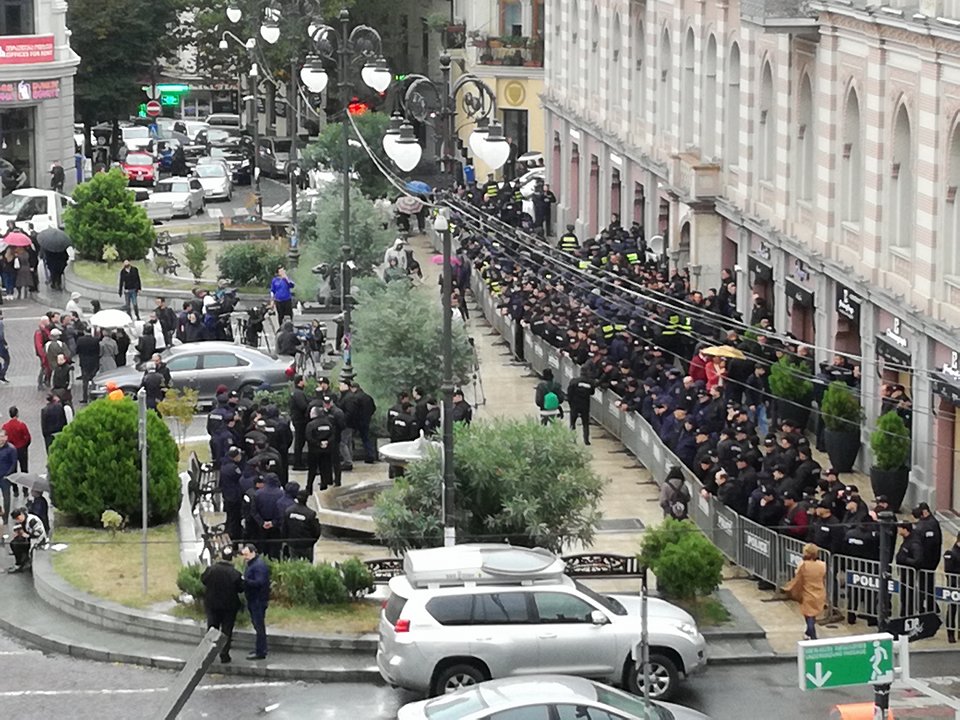 გაძლიერებული დაცვა საკრებულოსთან და შენობის გარეთ დარჩენილი ოპოზიციის წევრები
