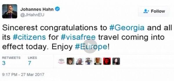 საქართველოს ევროკავშირთან უვიზო მიმოსვლას ულოცავს, ევროკომისარი ევროპის სამეზობლო პოლიტიკისა და გაფართოების საკითხებში იოჰანეს ჰანი. "გულწრფელად ვულოცავ საქართველოს და მის ყველა მოქალაქეს უვიზო მიმ... -