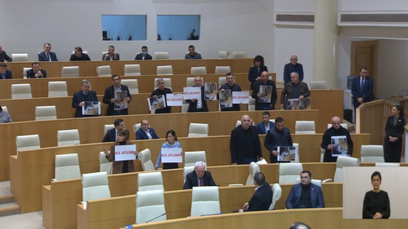 „ნაციონალური მოძრაობის“ წევრებმა პარლამენტის სხდომა, სადაც რატი ბრეგაძეს უსმენენ, პროტესტის ნიშნად დატოვეს