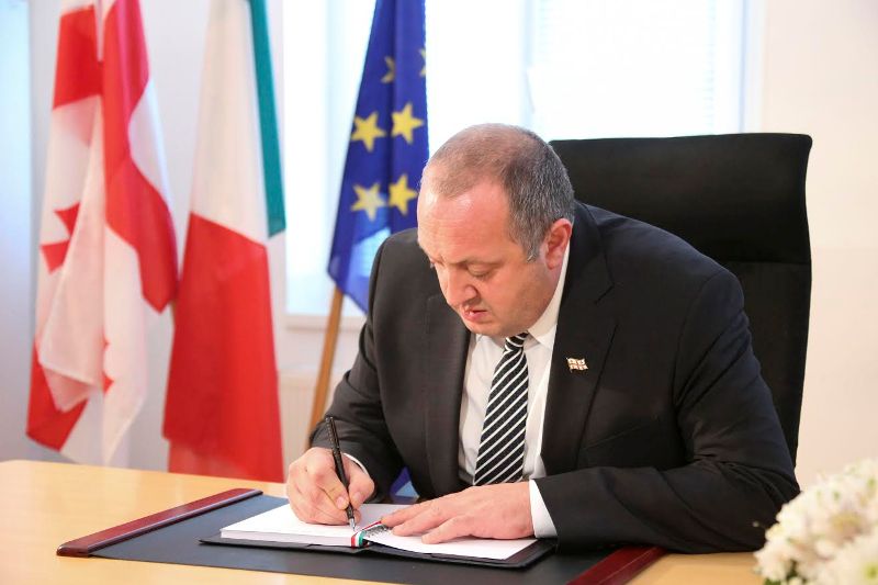 საქართველოს პრეზიდენტმა იტალიის საელჩოში გახსნილ სამძიმრის წიგნში ჩანაწერი გააკეთა