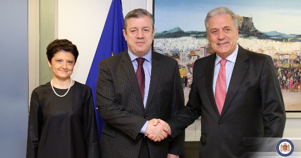ბრიუსელში ვიზიტის ფარგლებში საქართველოს ვიცე-პრემიერი, საგარეო საქმეთა მინისტრი გიორგი კვირიკაშვილი და იუსტიციის მინისტრი თეა წულუკიანი ევროკომისარს მიგრაციისა და საშინაო საკითხებში დიმიტრიუს ავ...