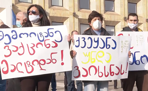 "ქვეყანა უნდა გაიხსნას" - შეზღუდვების შემსუბუქების მოთხოვნით საპროტესტო აქცია მიმდინარეობს