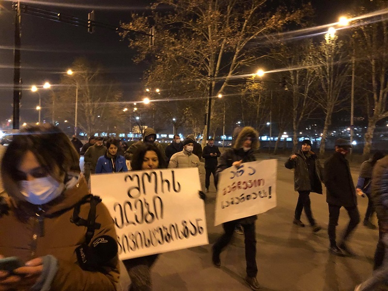 რუსთაველის გამზირზე აქცია-მსვლელობა დაიწყო, სამოქალაქო აქტივისტები ამ ფორმით კომენდანტის საათის არ ემორჩილებიან და არსებულ შეზღუდვებს აპორტესტებენ.