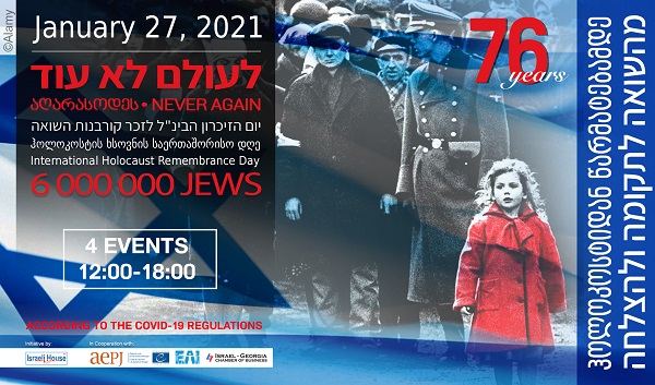 ხვალ, 27 იანვარს, ჰოლოკოსტის მსხვერპლთა ხსოვნის საერთაშორისო დღეს, "ისრაელის სახლის" თაოსნობით, რამდენიმე ღონისძიება გაიმართება. 12 საათზე დაგეგმილია "ისრაელის სახლში" ხსოვნის სანთლების დანთება, ქარ...