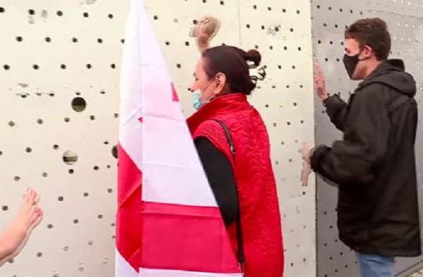 ცენტრალური საარჩევნო კომისიასთან აქტივისტები და მოქალაქეები საპროტესტო აქციას მართავენ. მათ ცესკოს შენობასთან რკინის ჯებირი დახვდათ აღმართული.