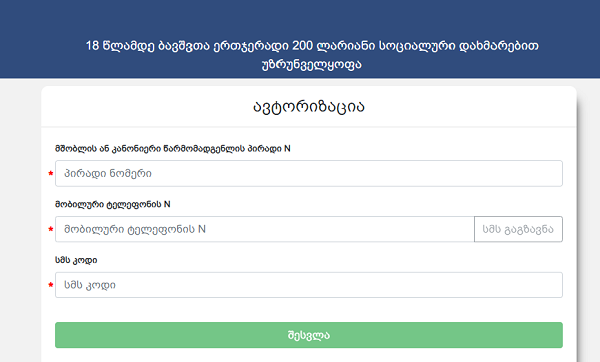 18 წლამდე ბავშვთა 200-ლარიანი დახმარების მისაღებად სპეციალური პორტალი ჩაირთო