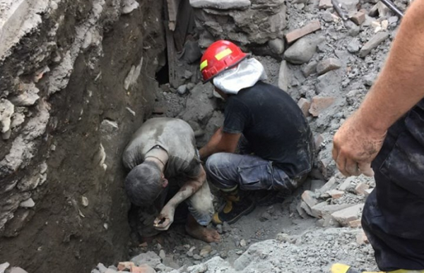 მაშველებმა ყვარელში ნანგრევებში მოყოლილი მუშა გადაარჩინეს