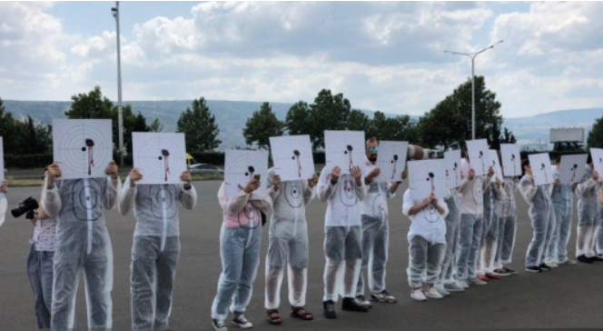 „ჩვენც მოგვარტყით“ - შსს-თან აქცია აქცია-პერფორმანსი გაიმართა