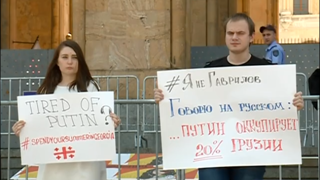 რუსეთისა და უკრაინის მოქალაქეებმა თბილისში, პარლამენტის შენობის წინ, საქართველოს მხარდასაჭერად აქცია გამართეს. აქციის მონაწილეებმა ტრანსფარანტებით „ჩვენ არ ვართ გავრილოვები“, „... -
