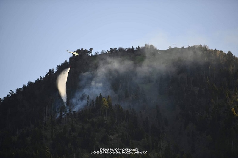 ბორჯომის ხეობაში, ტყის მასივში გაჩენილი ხანძრის სალიკვიდაციო სამუშაოები განახლდა