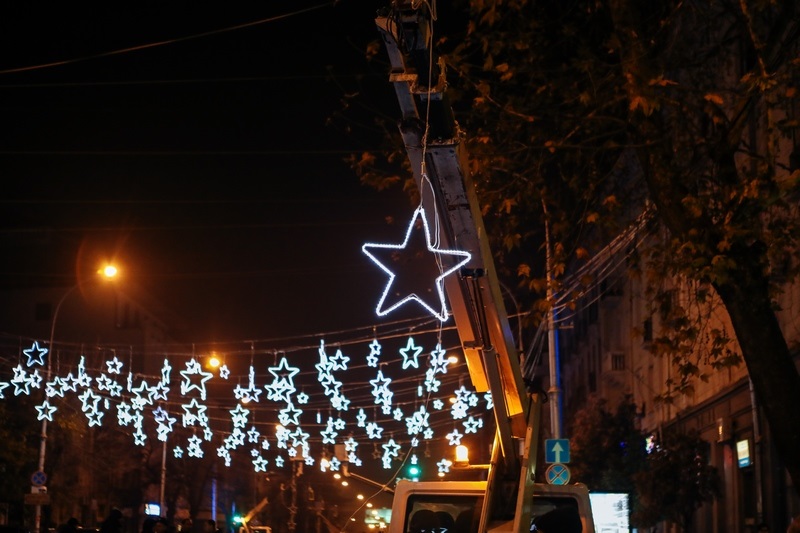 დედაქალაქში საახალწლო განათებების მონტაჟი გრძელდება.