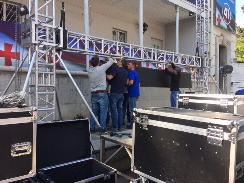 "ქართული ოცნების" ოფისთან სცენას ამონტაჟებენ