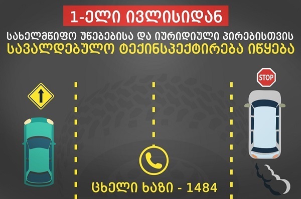 2018 წლის პირველი ივლისიდან სახელმწიფო უწყებებისა და იურიდიული პირების კუთვნილი ავტომობილების პერიოდული ტექნიკური ინსპექტირება დაიწყება.