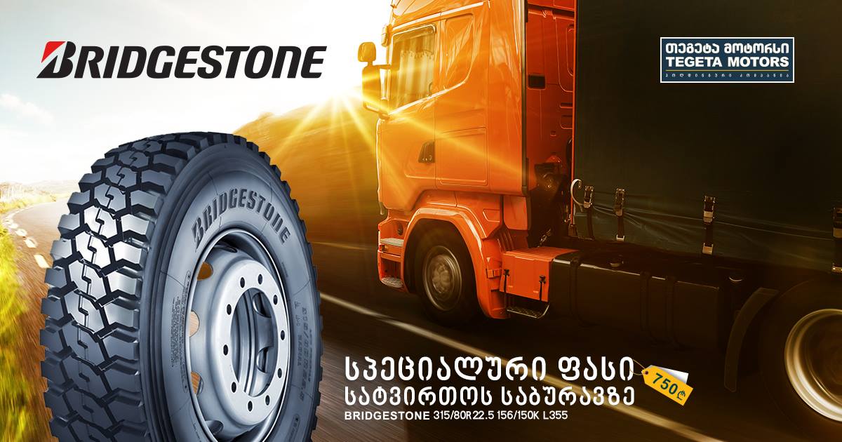 „თეგეტა“ სატვირთო ავტომობილების მფლობელებს სთავაზობს პრემიუმ კლასის ბრენდ Bridgestone-ის საბურავებზე აქციას. Bridgestone 315/80R22.5 156/150K საბურავების შეძენა აქციის ფარ...