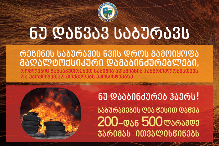 ჭიაკოკონობასთან დაკავშირებით, საბურავების ღია წესით დაწვა 200-დან 500-ლარამდე ჯარიმას ითვალისწინებს