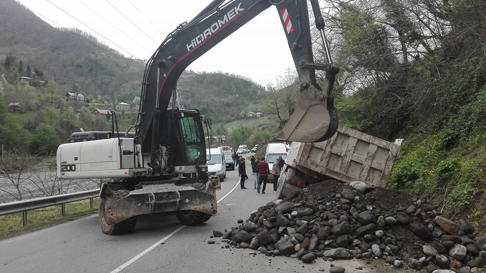 სოფელ მახუნცეთის საგზაო მონაკვეთზე სატვირთო ავტომობილი გზის სავალი ნაწილიდან გადავარდა