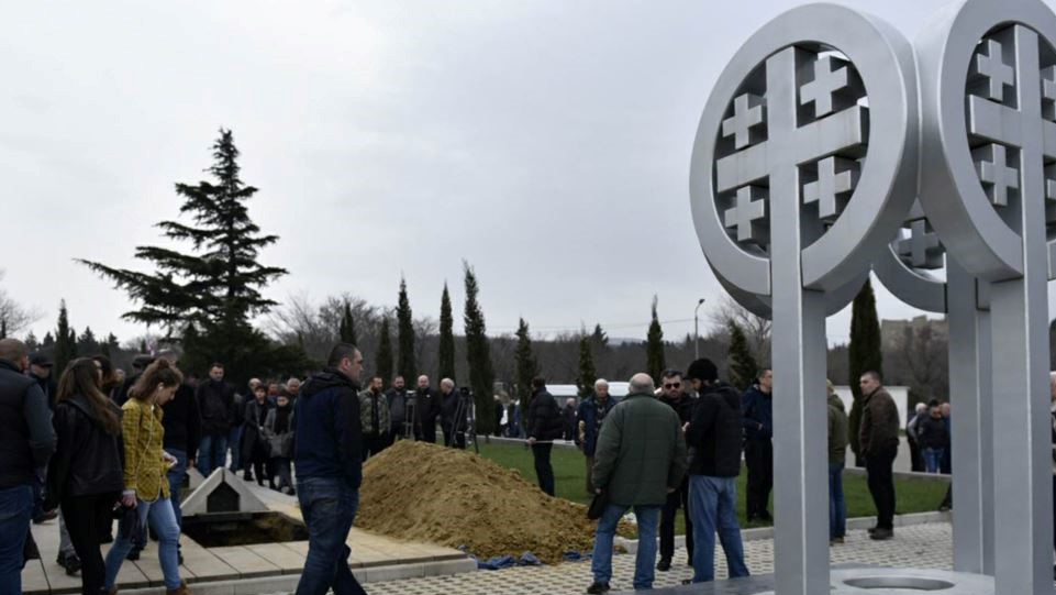 მუხათგვერდის ძმათა სასაფლაოზე არჩილ ტატუნაშვილის დაკრძალვის ცერემონია მიმდინარეობს