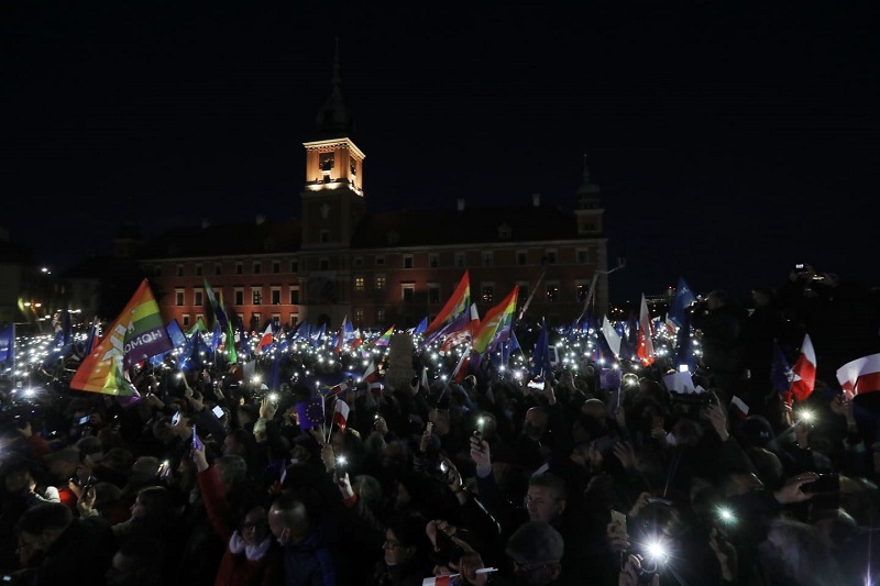 ათი ათასობით ადამიანი გამოვიდა ოპოზიციის მოწოდების შემდეგ ევროკავშირიდან პოლონეთის შესაძლო გასვლის საწინააღმდგო აქციაზე. მხოლოდ ვარშავაში მომიტინგეთა რაოდენობამ 100 000-ს მიაღწია.