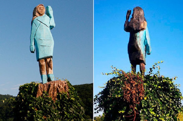 სლოვენიაში მელანია ტრამპის ხის სკულპტურა დაწვეს