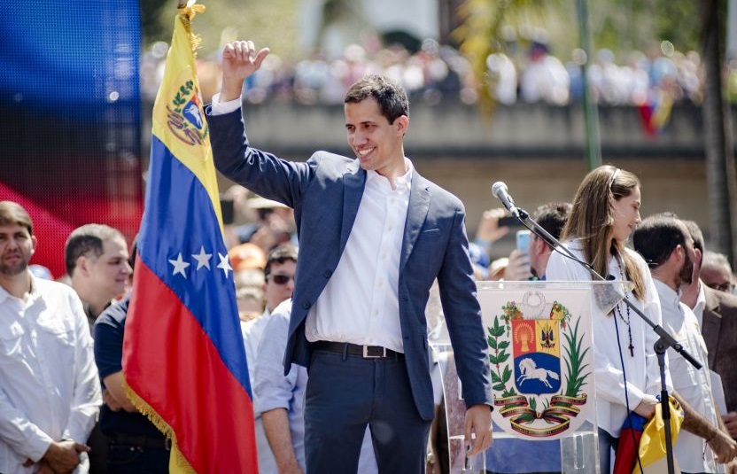 ვენესუელის დროებითი პრეზიდენტი ხუან გუაიდო კარაკასში მრავალათასიან მიტინგზე მხარდამჭერების წინაშე სიტყვით გამოვიდა.