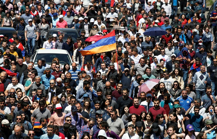 ერევანში საპროტესტო აქციებმა ქალაქის ცენტრი მოიცვა. დემონსტრანციები ასევე იმართება სომეხთის სიდიდით მეორე ქალაქ გიუმრიში და სხვა დასახლებულ პუნქტებში. ძალიან ბევრი ხალხია შეკრებილი ერევნის რესპუბლიკი... -