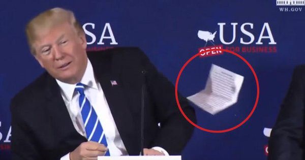 აშშ-ის პრეზიდენტმა დონალდ ტრამპმა დასავლეთ ვირჯინიაში საგადასახადო პოლიტიკისადმი მიძღვნილ სხდომაზე ფურცელი, რომელზეც მისი სიტყვით გამოსვლა ეწერა, დემონსტრაციულად მოისროლა. „იცით, აქ ჩემი შენიშვ... -